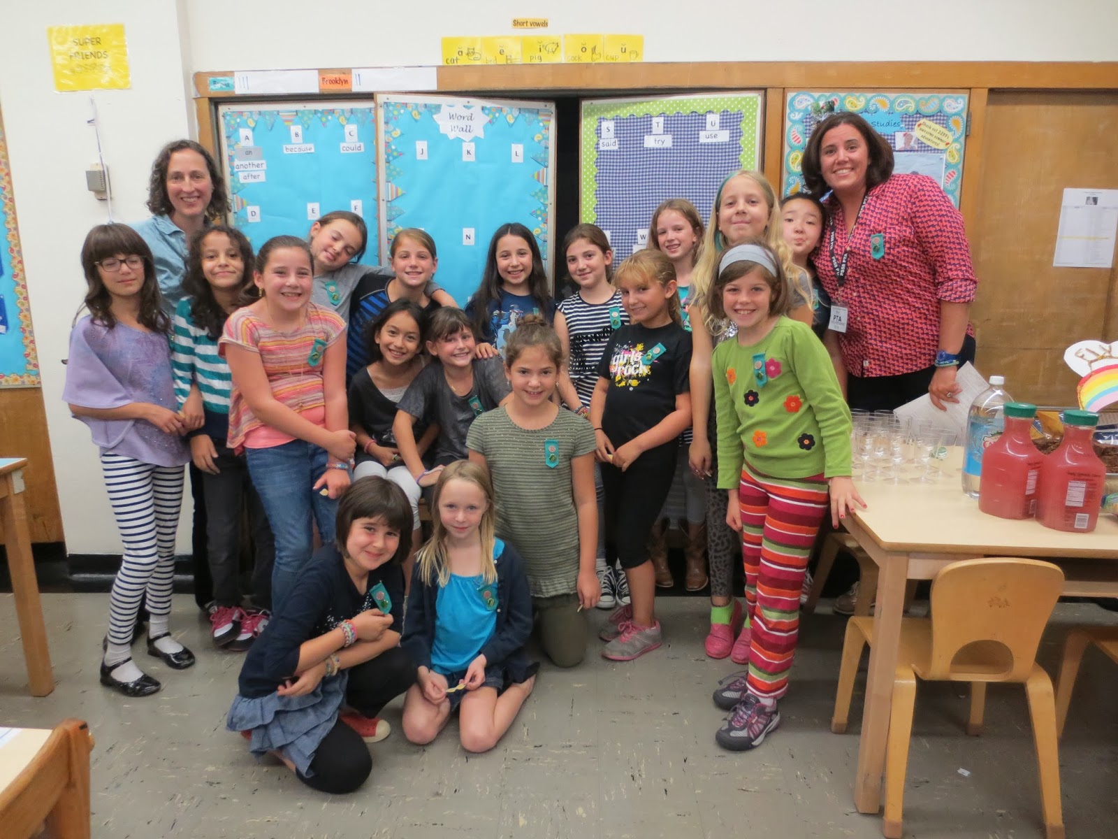 After the ceremonies we had a little party with cupcakes, brownies, cheese sticks and pretzels. The brownies symbolized the girls as Brownies, and the cupcakes had the Girl Scout trefoil symbol on them. We also had a toast for great year of scouting with bubbly pink lemonade.